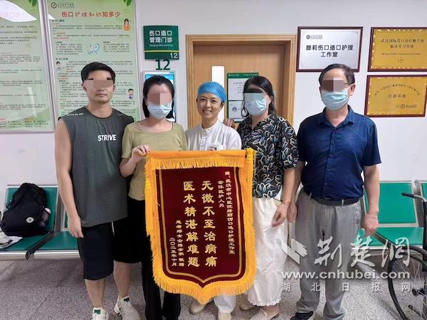 荆楚网(湖北日报)(记者林琳通讯员曹芙丽梅)“谢谢您治愈了困扰我一个多月的伤口,让我可以安心迎接宝宝了!”近日,怀孕近8个月的邓女士在家人的陪伴下,给位于武汉市中心医院后湖院区的腾力伤口造口护理工作室送去了锦旗。