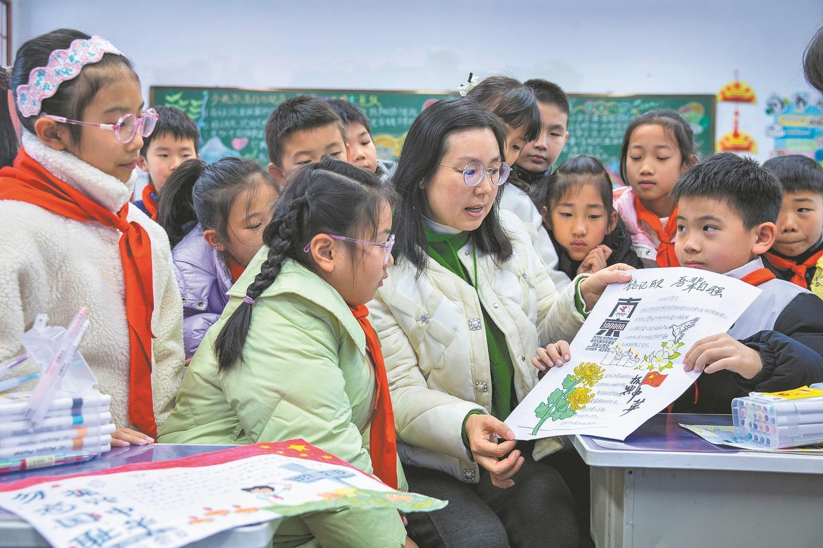 12月10日,市米工小学三(5)班举行手抄报创作活动。老师通过讲解历史知识、教授手写主题手绘报纸、组织网上悼念英雄烈士等方式,引导学生审视历史、缅怀先人,在实践中培养爱国主义精神。